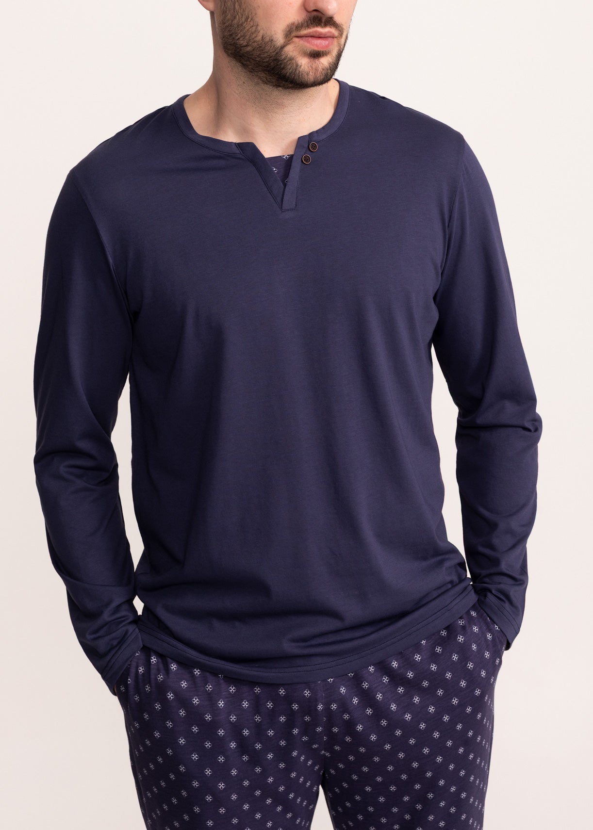 Simte confortul unei atingeri moi și plăcute pe timp de noapte, cu pijamaua din bumbac din colecția Oliver.