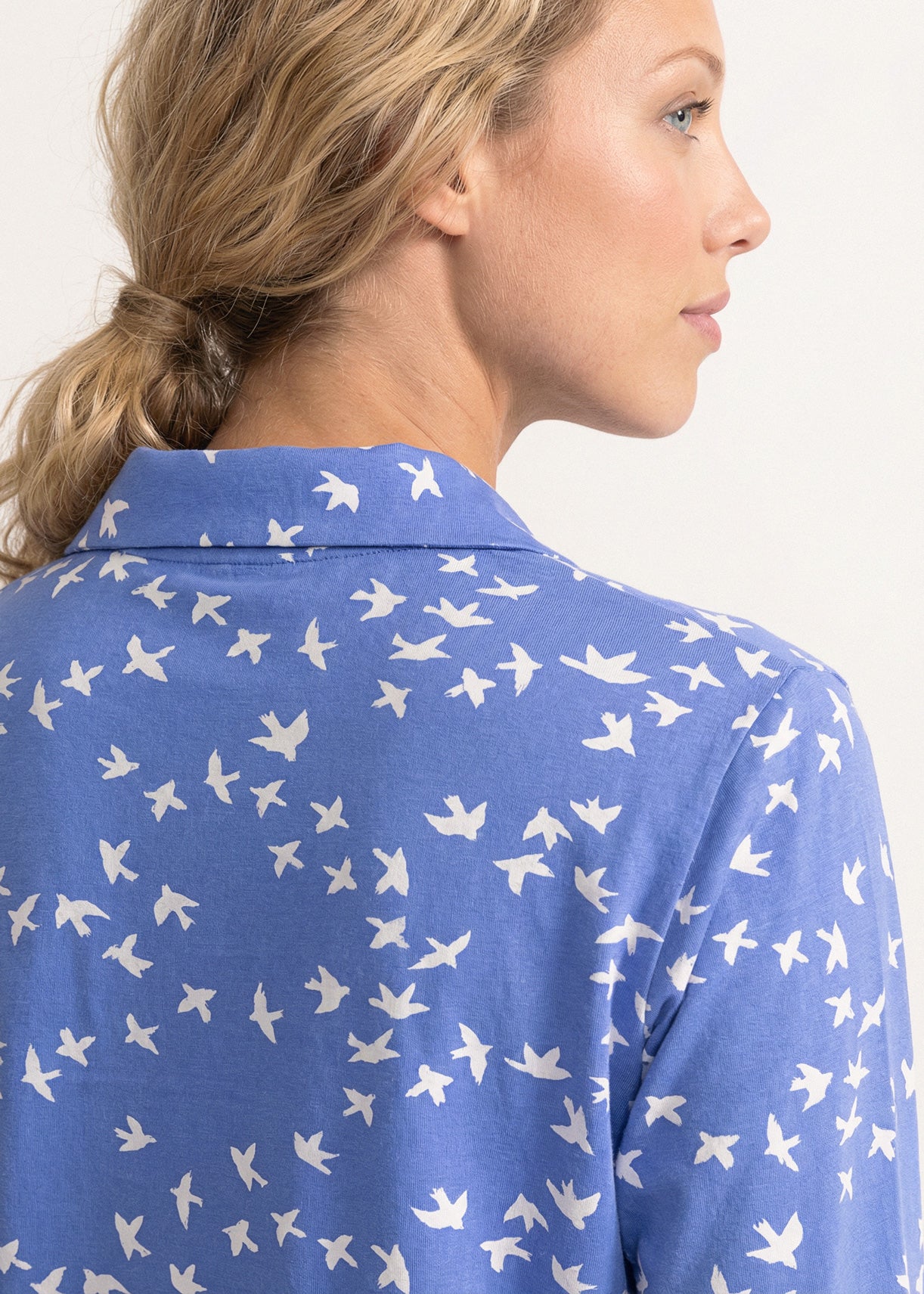 Setul de pijamale este confecționat din bumbac perfect pentru seri liniștite și confortabile acasă.
