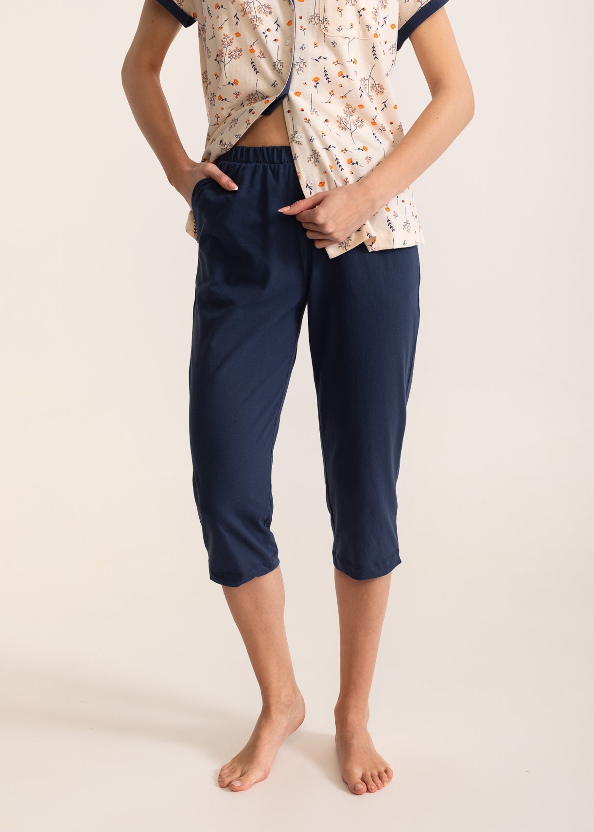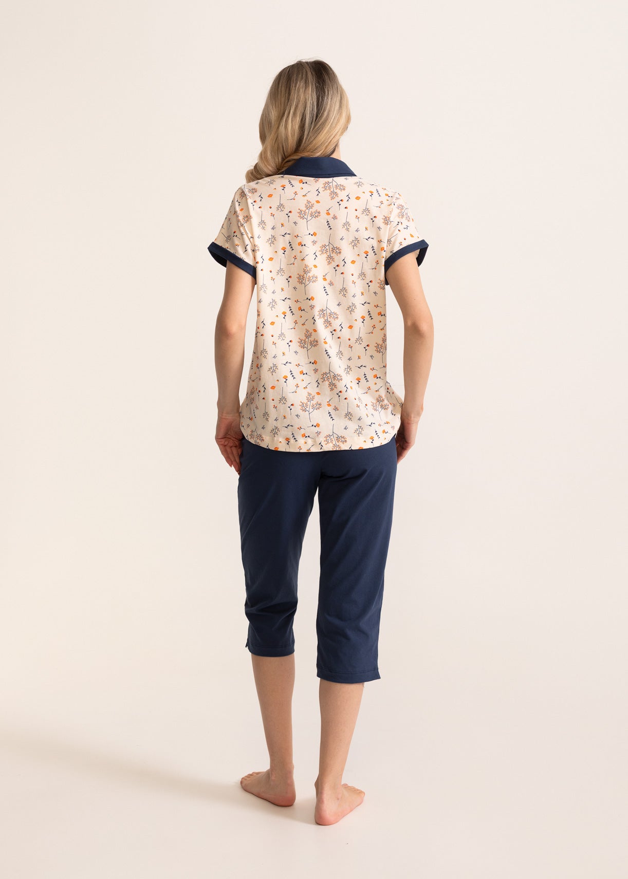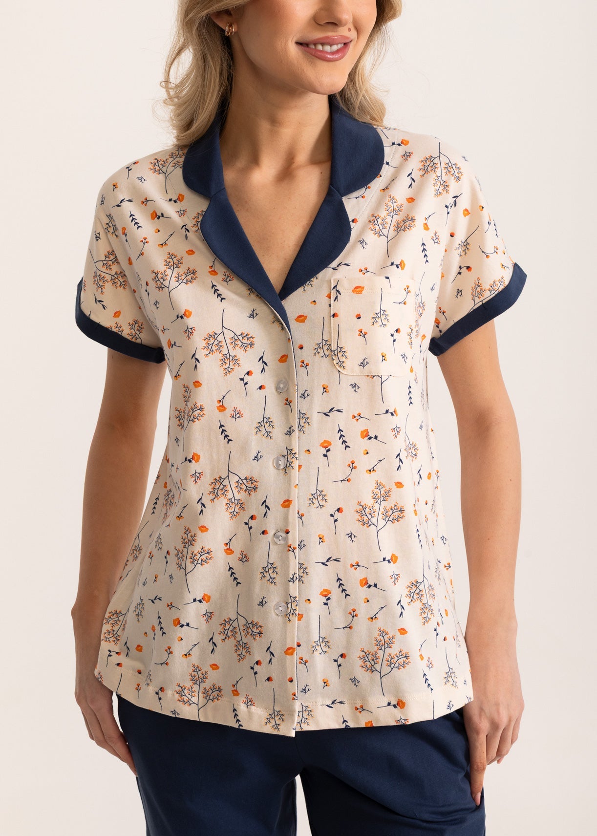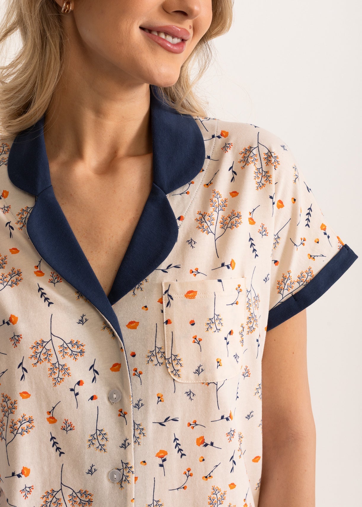 Setul de pijamale este confectionat din bumbac perfect pentru seri liniștite și confortabile acasă.