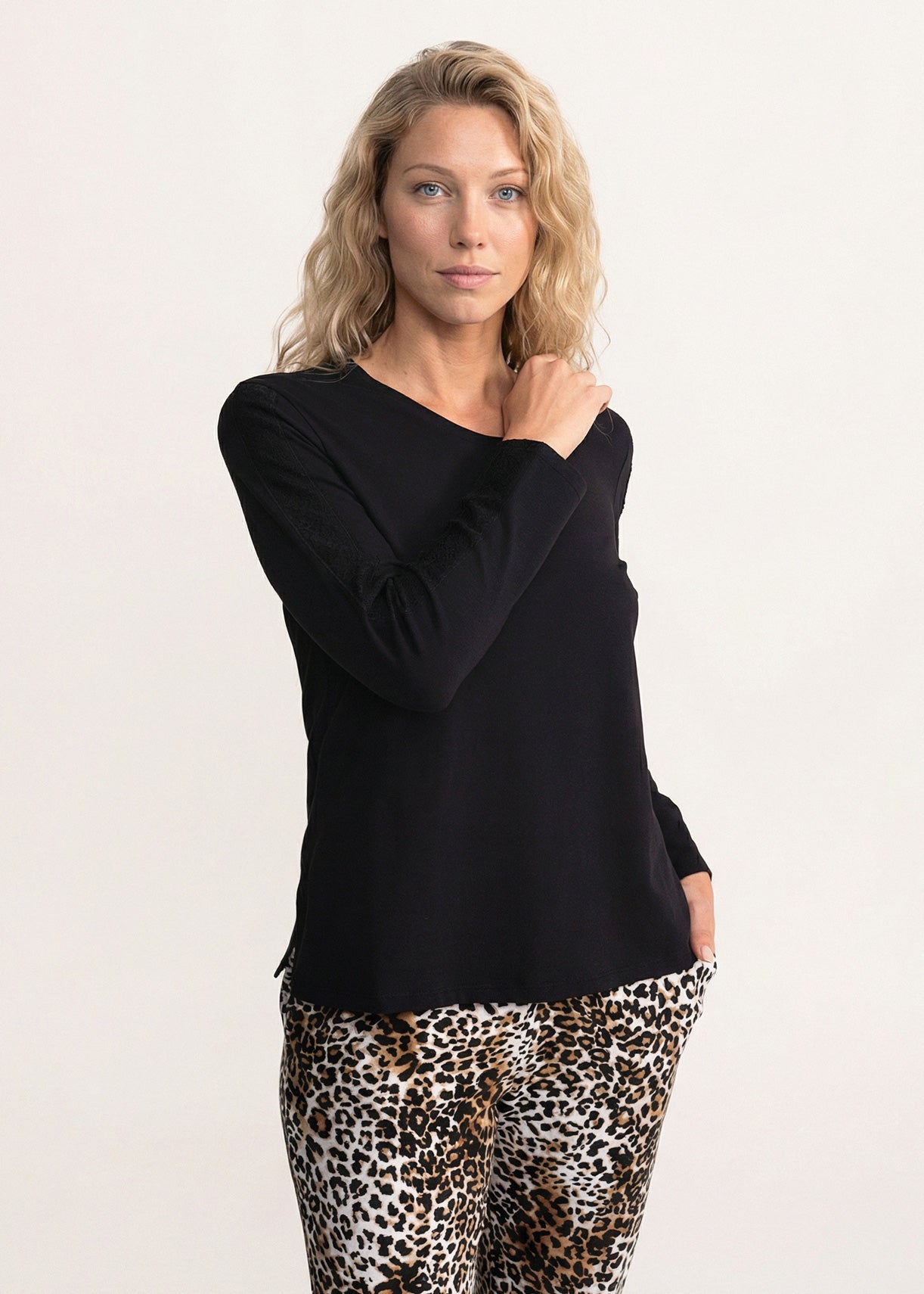 Setul de pijamale este confecționat din bumbac perfect pentru seri liniștite și confortabile acasă.