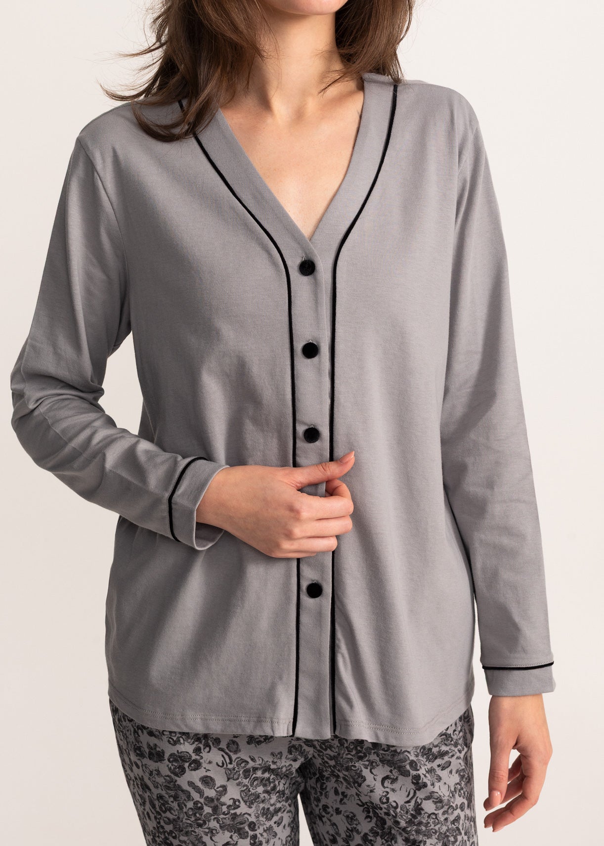 - bluză descheiată cu mâneci lungi