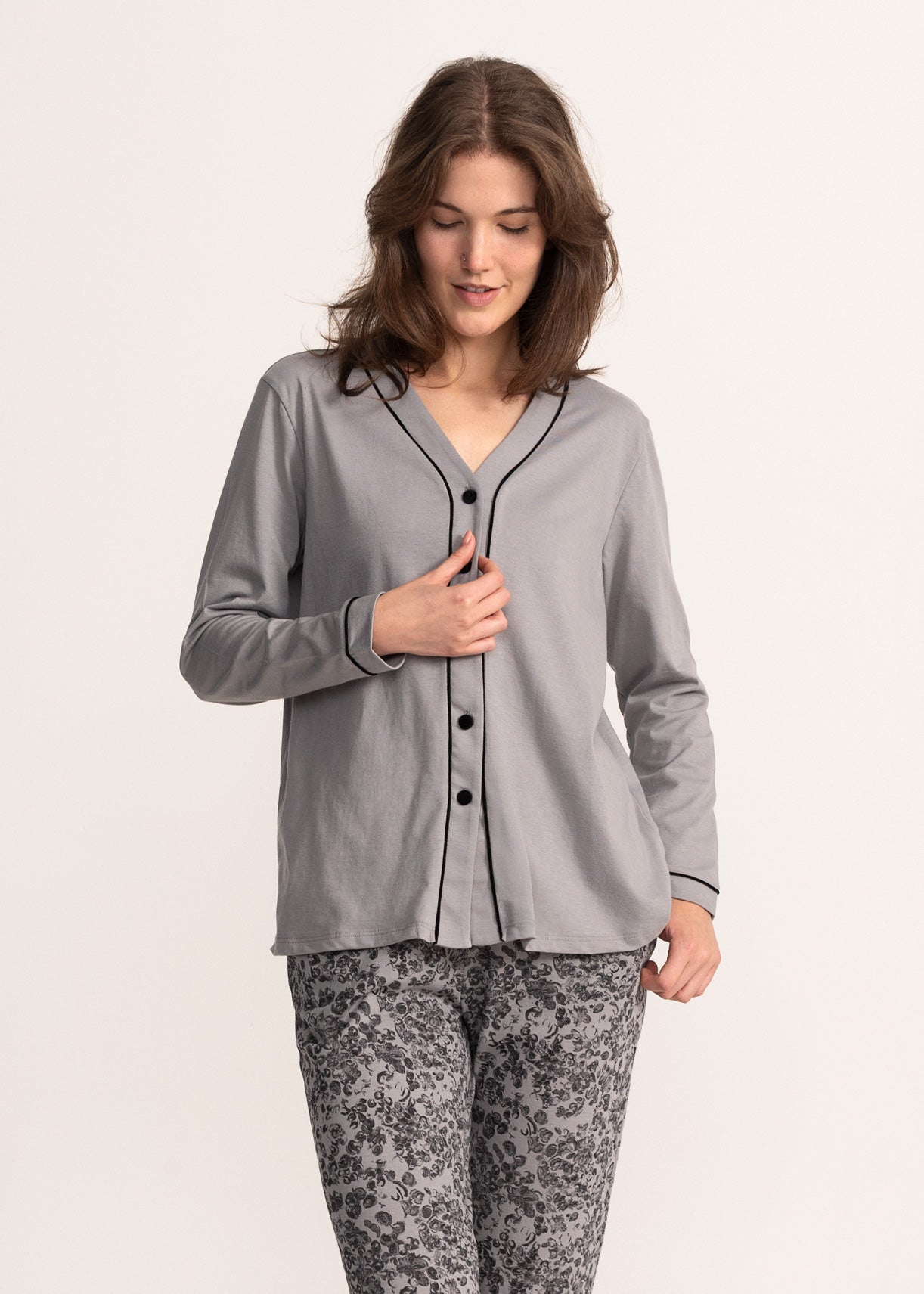 Setul de pijamale este confecționat din bumbac perfect pentru seri liniștite și confortabile acasă.